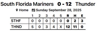 The Thunder opened its 44th season Sunday with a win over the Mariners in an afternoon game at the Santaluces Sports Complex.