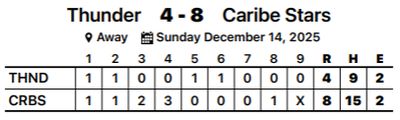 Thunder fell to Caribe Stars 8-4 on Sunday at Dyer Park.